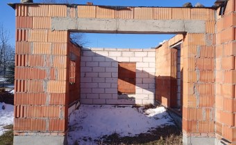 Największym atutem nieruchomości jest uregulowany stan prawny i rozpoczęta już budowa. Kupujący przejmuje teren z pozwoleniem na budowę domu jednorodzinnego o powierzchni 192 m² (projekt parterowy z poddaszem użytkowym i garażem w bryle. Wymiary budynku 9,5x18 m). Zaawansowanie prac budowlanych jest widoczne na załączonych fotografiach.