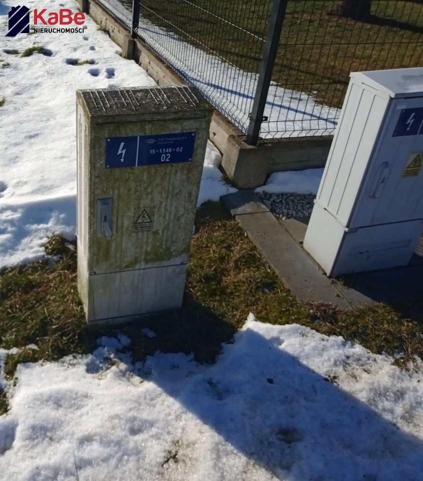 - Media: Skrzynka elektryczna na działce, woda w drodze przy działce, dostępny światłowód.