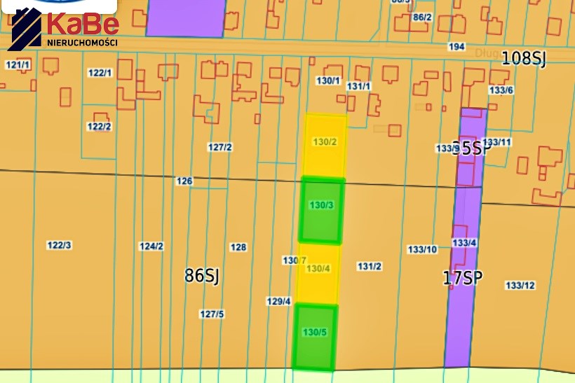Nieruchomość o numerze ewidencyjnym 130/5 ma powierzchnię około 1400 m² i bardzo korzystne proporcje, które dają duże możliwości zagospodarowania terenu.