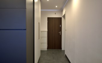 przedpokój z pojemną szafą w zabudowie, zapewniającą dużo miejsca do przechowywania.